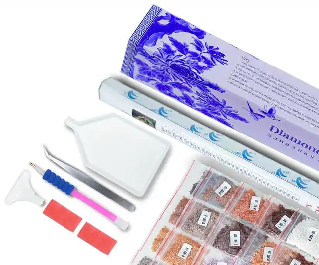 Chez My Diamond Painting.fr nous vendons uniquement des kits de broderie diamant contenant l'ensemble des outils et accessoires nécessaires à la confection de votre toile ainsi que les sachets de strass 5D de la forme que vous aurez préalablement choisie.