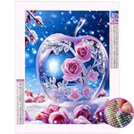 Ce kit de diamond painting présente une pomme transparente posée sur la neige. En son cœur, des roses aux pétales roses se mêlent à de fines branches de cristal. Des flocons de neige tombent doucement, apportant du mouvement à cette scène silencieuse et magique. Réaliser ce kit d’art créatif, c’est composer une œuvre empreinte de poésie.