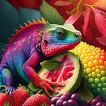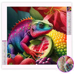 Ce motif en peinture diamant représente d’un lézard sur un tas de fruits colorés. Créez une atmosphère de nature exotique dans votre maison en faisant entrer chez vous ce bel animal. Une toile disponible sous différentes tailles en impression haute définition pour une visibilité parfaite des symboles.
