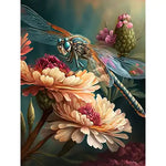 Une libellule en gros plan repose avec grâce sur une fleur aux pétales délicats. Ses ailes transparentes semblent capturer la lumière, révélant des nuances subtiles et aériennes. Ce tableau diamant mêle élégance naturelle et plaisir créatif dans un moment plein de poésie. Posez délicatement vos strass scintillant sur le portrait de cette libellule pour lui donner vie.