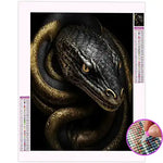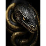 Un serpent majestueux se révèle, orné d’écailles sombres aux reflets dorés et envoûtants. Les contrastes de noir profond et d’or lumineux donnent vie à une composition saisissante. Lié à la force de la vie et à l’énergie primale, le serpent est un animal représentant le pouvoir de guérison.
