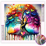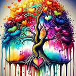 Un arbre majestueux déploie ses branches décorées de cœurs aux nuances éclatantes et joyeuses. Les racines s’enlacent délicatement pour former un cœur symbole d’amour et d’harmonie profonde. Les strass 5D en résine apportent des reflets lumineux qui subliment chaque détail de cette création.