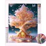 Kit de broderie diamant d’un arbre transformé en une charmante maison