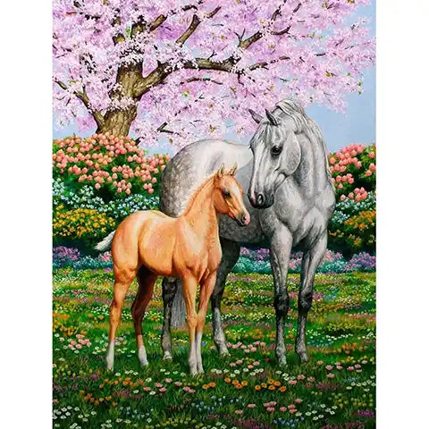 Découvrez un diamond painting empreint d’amour et de douceur, mettant en scène la relation touchante entre une jument et son poulain. Ensemble, ils évoluent dans un magnifique pré fleuri, éclatant de couleurs naturelles. Les nuances délicates des pétales s'entremêlent pour créer une toile vibrante et apaisante. Chaque strass ajouté représente un moment de connexion avec l'élégance du monde équestre.