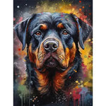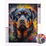 Un canevas en diamond painting d'un rottweiler au regard touchant