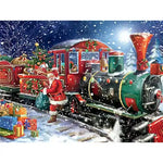 Voici une scène vous plonge au cœur de l'esprit de Noël. Vous y découvrirez le Père Noël tenant des cadeaux entre ses mains, prêt à charger son train de présents pour les enfants du monde entier. Les petits flocons de neige ajoutent une touche de magie à l'ensemble, évoquant le charme du temps des fêtes. À chaque placement de diamant, vous donnerez vie à cette scène hivernale.