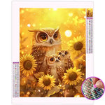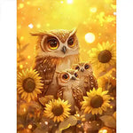 Une broderie diamant pleine de tendresse représentant une maman chouette accompagnée de ses deux petits. Ils sont nichés au cœur d’un champ de tournesols éclatants, baigné de lumière chaleureuse. Les fleurs jaunes et lumineuses entourent la famille d’oiseaux, créant une atmosphère douce et rassurante.
