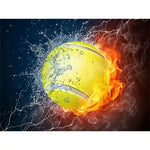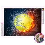 Diamond painting dynamique : balle de tennis entre flammes et eau