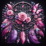Un attrape rêve délicat aux plumes roses et mauves s’invite sur cette peinture diamant pleine de tendresse. Décoré de magnifiques roses et de papillons gracieux, le motif évoque légèreté, douceur et protection. De petits joyaux roses scintillent sur la toile centrale, ajoutant une touche féerique à l’ensemble.