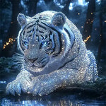 Diamond painting tigre blanc dans un paysage nocturne féérique