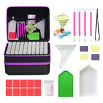 Cette mallette ne se limite pas à un simple rangement ; elle est équipée de trois niveaux spacieux et d'accessoires pratiques, dont un grand plateau à diamants, un plateau standard, quatre stylos à strass, une équerre, un entonnoir, une pince, des sachets, des autocollants et un carré de colle. Parfaite pour les puristes, elle vous permet de garder vos fournitures bien organisées et prêtes à l'emploi !