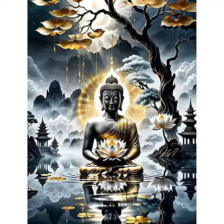 Diamond painting de bouddha avec une fleur de lotus