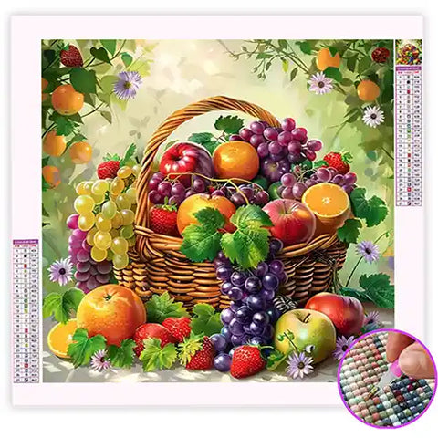 Une corbeille généreuse débordant de fruits savoureux sur toile de diamond painting