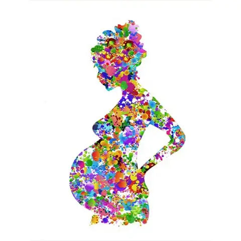 Voici une peinture diamant qui met en lumière la beauté et la grâce de la maternité à travers un motif artistique délicat et émouvant. Le portrait de profil d'une femme enceinte est représenté par une série de taches de peinture. Un projet d’art créatif qui offre une façon élégante et originale de célébrer la beauté de la grossesse.