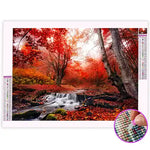 Cette broderie diamant est un ouvrage d'art époustouflant qui apportera une touche de nature d’automne au sein de votre maison. Le sol est recouvert d’un magnifique tapis de feuilles rouges et la forêt est traversée par une charmante rivière, créant ainsi une scène à la fois paisible et sereine.